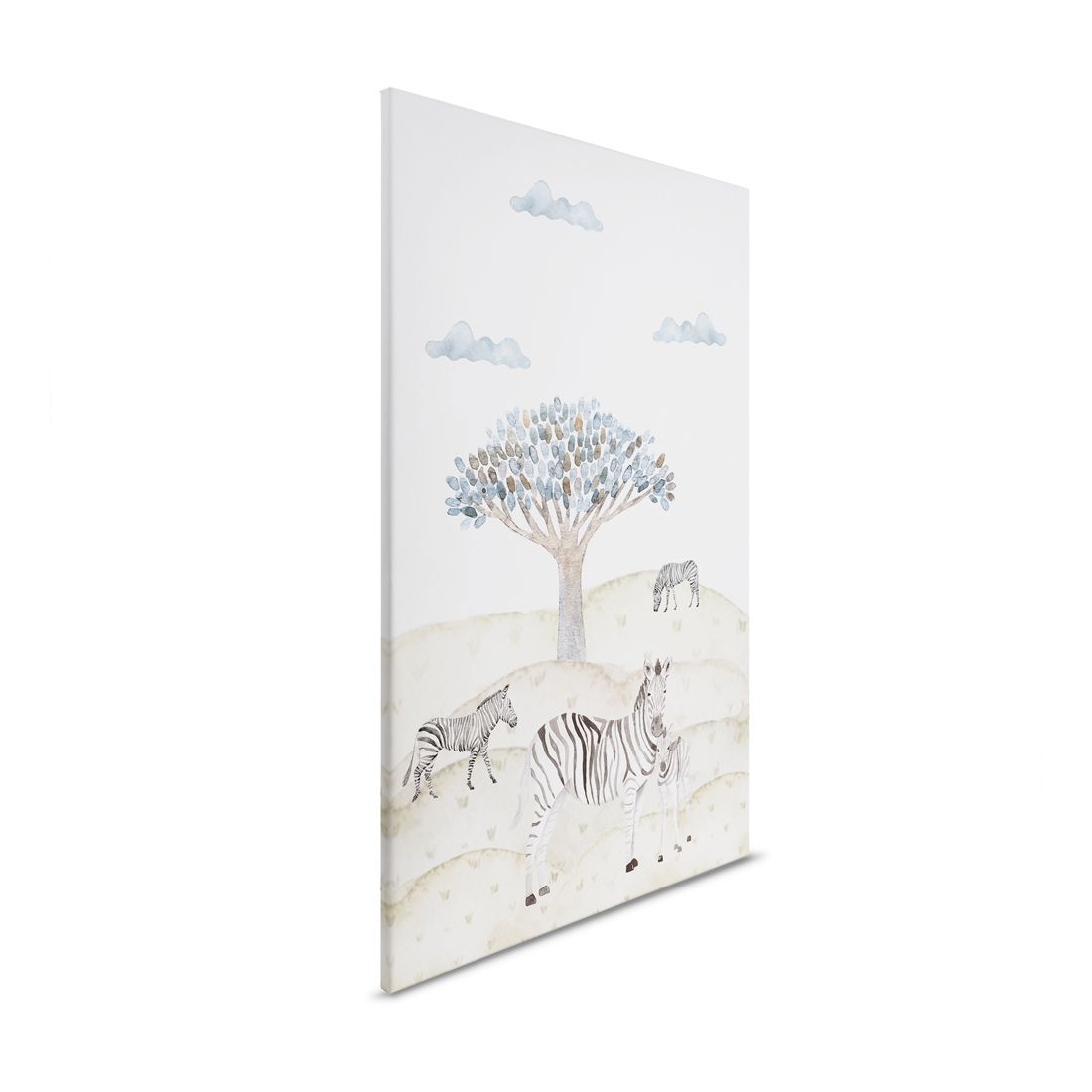 Dětský obraz na zeď Lilly & Luis od značky A.S. Création přináší jemný a hravý motiv africké přírody s roztomilými zebrami a stylizovaným stromem. Neutrální béžovo-modré tóny působí klidně a harmonicky, díky čemuž je obraz ideální dekorací do dětského pokoje, herny nebo koutku pro nejmenší. Kvalitní tisk na plátno napnuté na dřevěném rámu zajišťuje dlouhou životnost a elegantní vzhled. Matný povrch neodráží světlo a zvýrazňuje detaily ilustrace. Obraz se snadno kombinuje s dalšími dětskými dekoracemi a vytvoří útulnou atmosféru v každém interiéru.