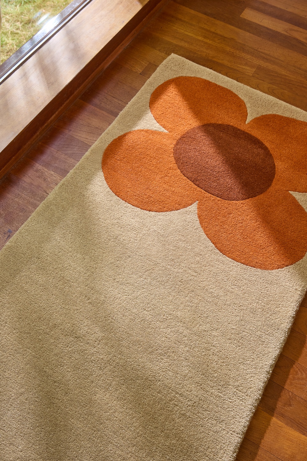 Vlněný koberec běhoun Orla Kiely Flower Placement Pumpkin/Ecru – květinový vzor
