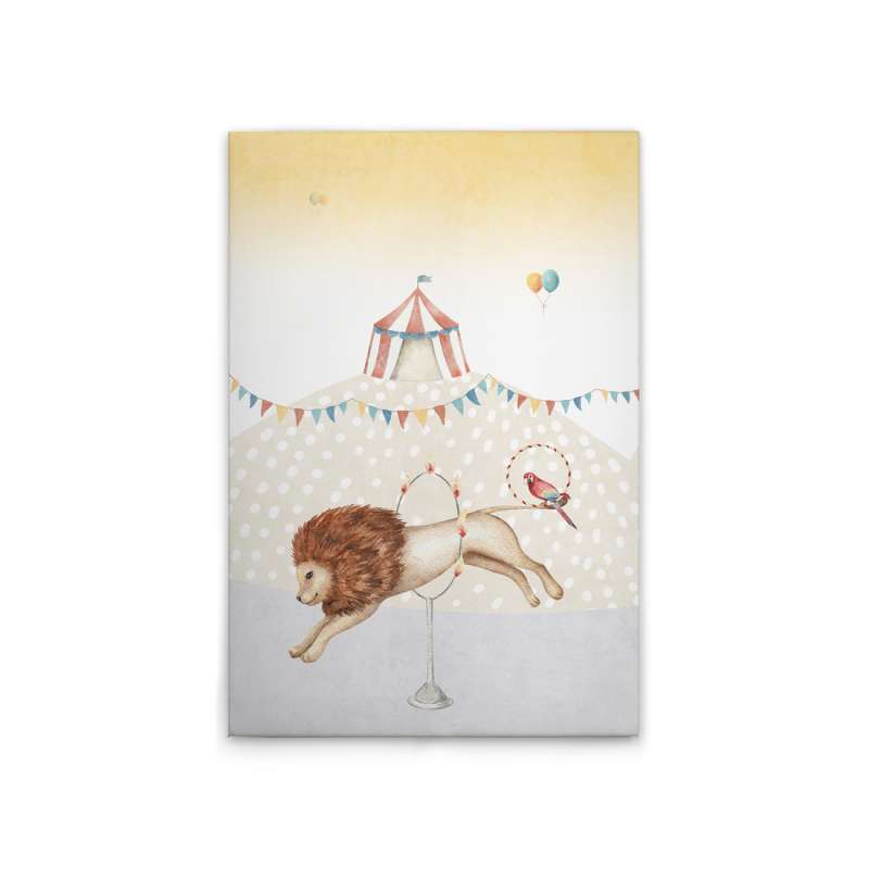 Dětský obraz na zeď Leva v cirkusu Lilly & Luis vnese do dětského pokoje hravou atmosféru plnou fantazie a radosti. Jemný akvarelový motiv lva v cirkusu v pastelových barvách působí klidně, útulně a zároveň podněcuje dětskou představivost. Obraz na zeď je vytištěn na kvalitním plátně napnutém na pevném dřevěném rámu. Díky univerzálním barvám se snadno kombinuje s ostatním vybavením dětského pokoje a je vhodný jak pro holčičky, tak pro kluky. Ideální dekorace do dětského pokoje, herny nebo koutku pro nejmenší.