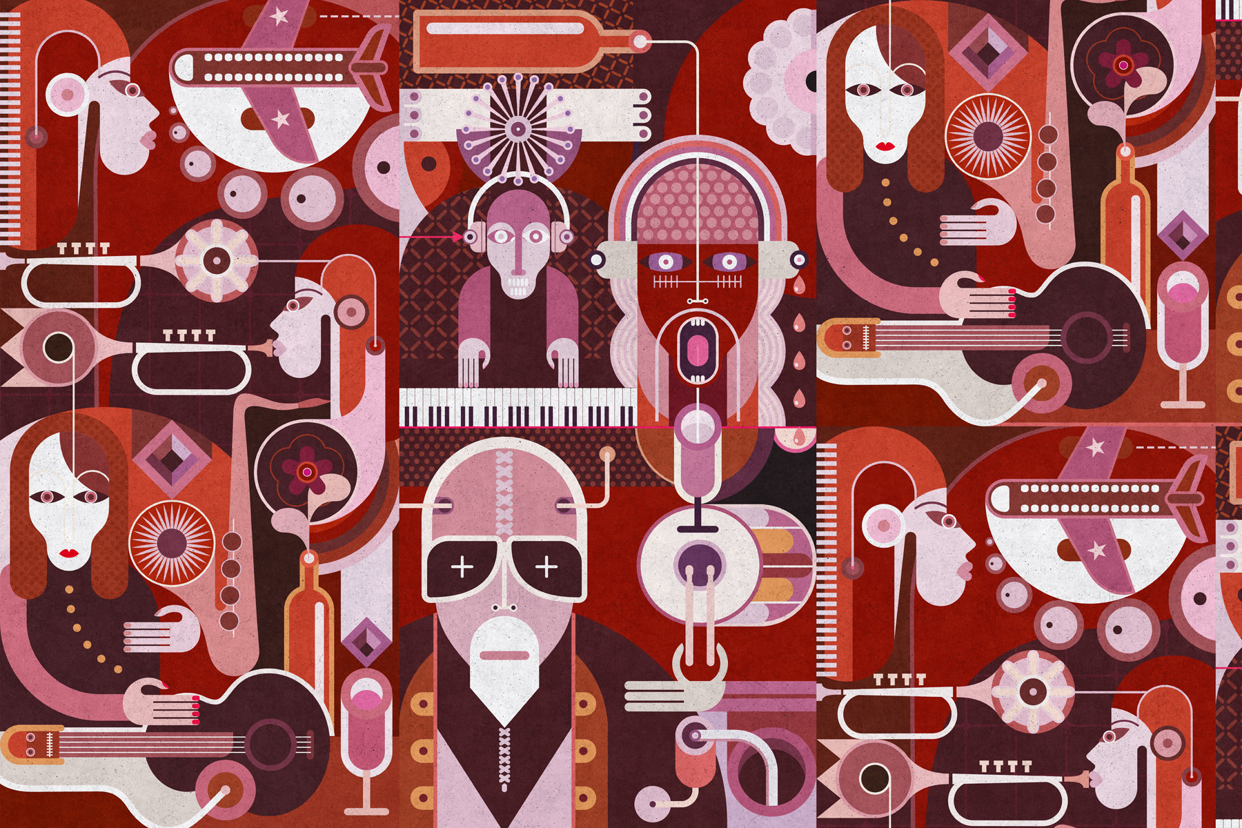 Výrazný obraz na plátně zobrazuje stylizovaný svět hudby plný postav a hudebních nástrojů, jako jsou kytary, klávesy, mikrofony a dechové nástroje. Celá kompozice je složena z geometrických tvarů a ilustrativních postav s výraznými rysy, které dohromady vytvářejí živou, rytmickou a dynamickou scénu. Převládající červené, vínové a růžové tóny dodávají obrazu energii a hloubku. Tento obraz je ideální jako dominantní dekorace do obývacího pokoje, pracovny, hudebního studia, kavárny nebo moderního interiéru. Skvěle osloví milovníky hudby, designu a originálního umění. Obraz je vyroben z vysoce kvalitního plátna s precizním tiskem, který zajišťuje dlouhou životnost a výrazné barvy. Je vhodný pro obývací pokoj, ložnici, kancelář i jiné prostory, kde chcete vytvořit silný vizuální akcent. Obraz je dostupný ve více velikostech od 30 × 45 cm až 120 × 80 cm, takže si každý může vybrat variantu, která nejlépe odpovídá velikosti a charakteru místnosti.
