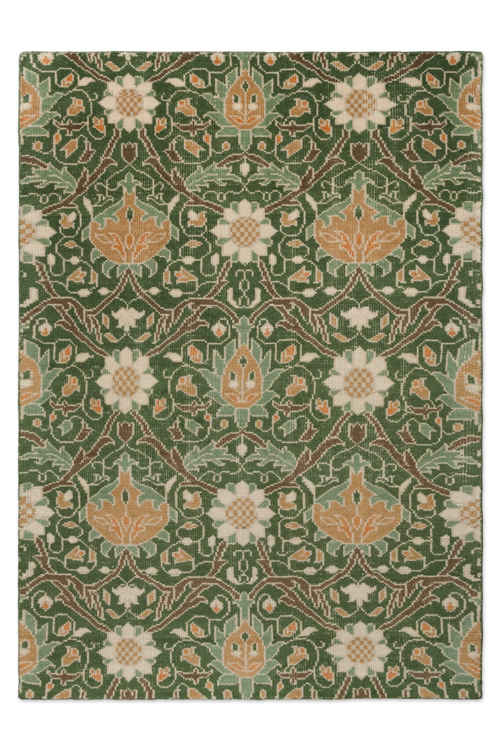 Designový koberec Morris & Co Montreal Forest zaujme dekorativním květinovo-listovým vzorem inspirovaným tradičním britským designem, který kombinuje motivy listí, květů a jemných vinic v hlubokých lesně zelených a přírodních tónech. Tento ornament přináší do prostoru klid, eleganci a atmosféru přírody, která se hodí jak do moderního, tak klasicky laděného interiéru.