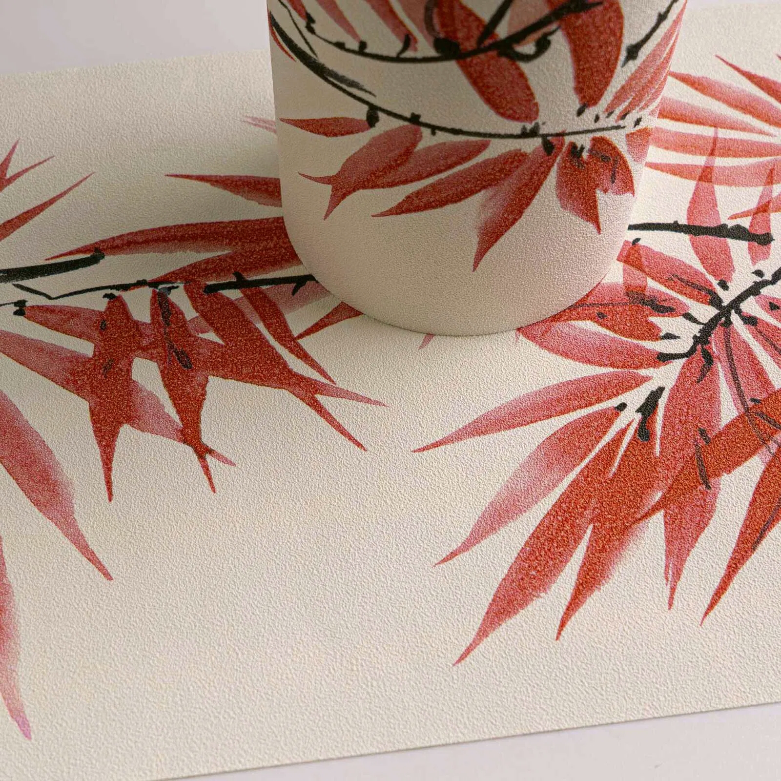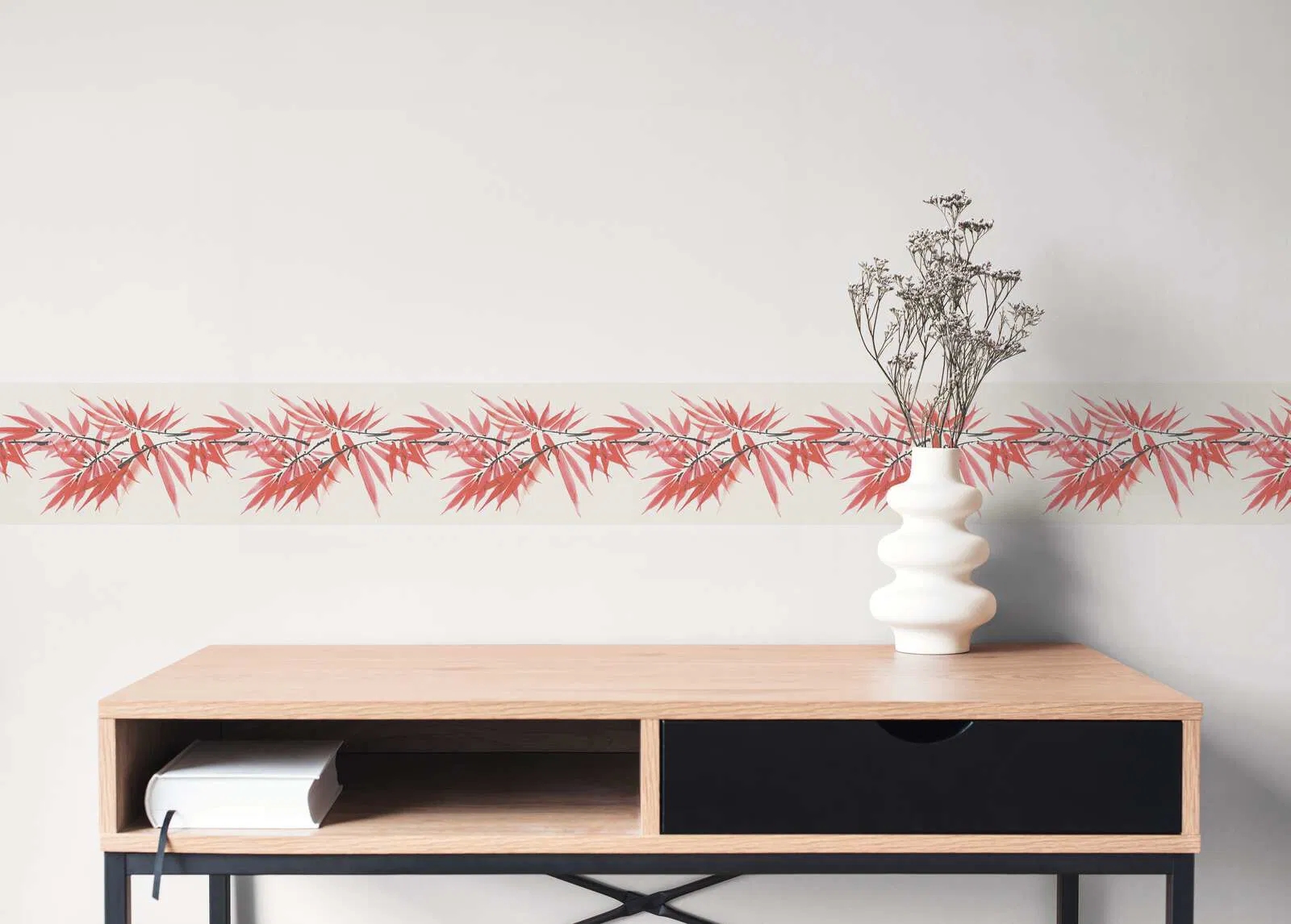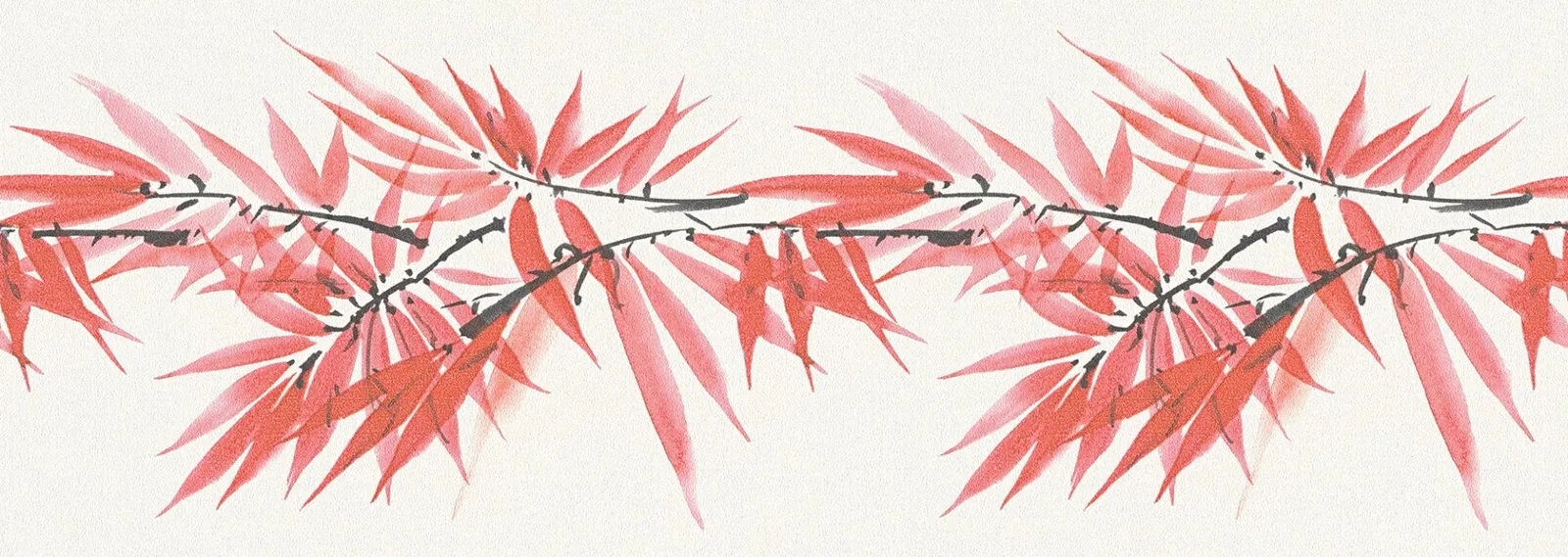 Vliesová bordura SK-Borten – červené listy na bílém podkladu